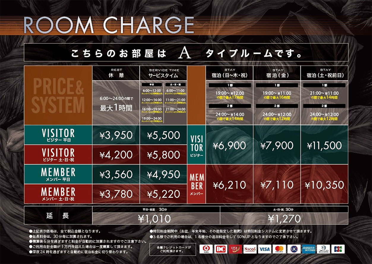 ※深夜24時を過ぎますと自動的に宿泊料金に切り替わります。