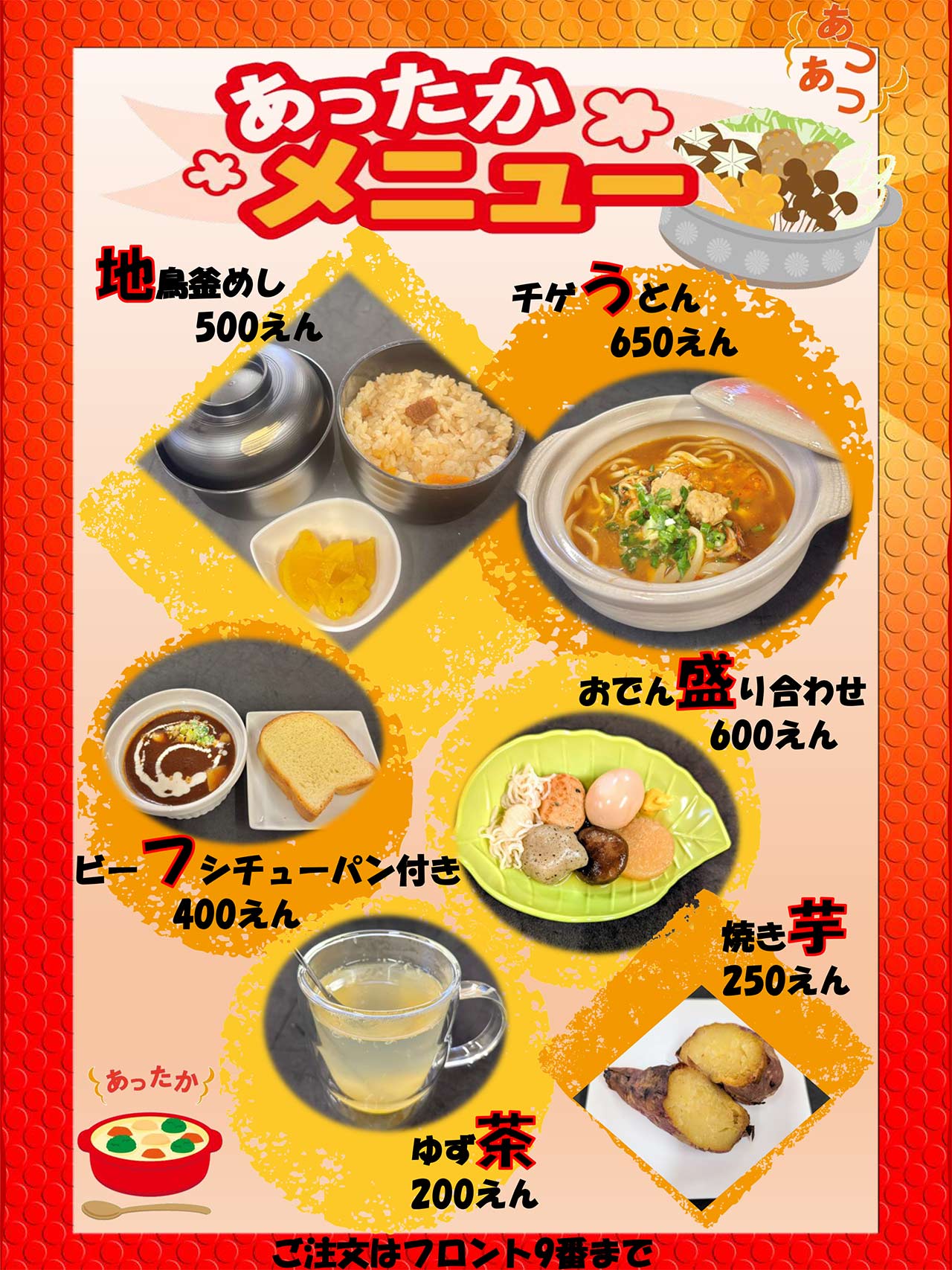 泉大津 ホテル かぼちゃの馬車 TOP EVENT ROOM&PPRICE FACILITY&SERVICE MEMBERS ACCESS&INFOMATION お電話でのお問合せ イベント情報 ◆◆◇◇ホテル かぼちゃの馬車 イベント情報のご案内ページです。◇◇◆◆ 2025 冬の味覚フェア 冬の味覚フェア開催! 美味しい冬の味覚をご堪能ください 地鶏釜めし チゲうどん おでん盛り合わせ ビーフシチュー パン付き 焼き芋 ゆず茶 ご注文はフロント9番まで 2025 クリスマス スクラッチキャンペーン クリスマス スクラッチキャンペーン! スクラッチカード無料配布中! ご来店のお客様全員参加OK! お部屋に置いてあるスクラッチカードを削って 豪華賞品をGET! 詳しくは画像をタップしてください